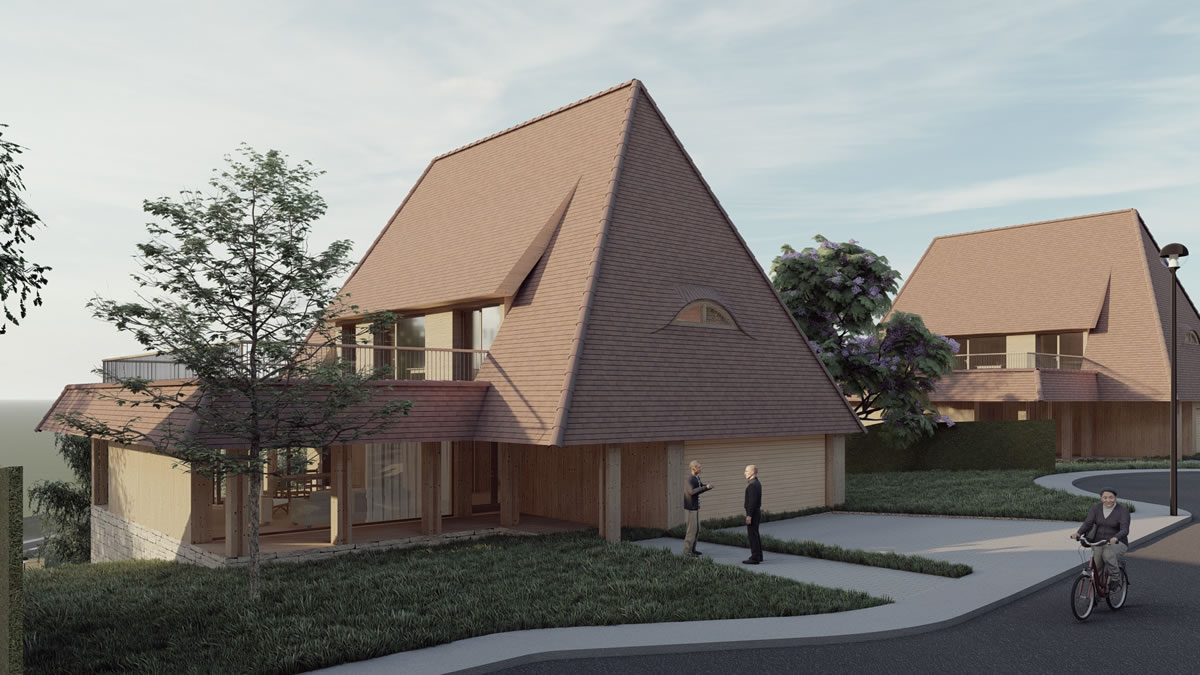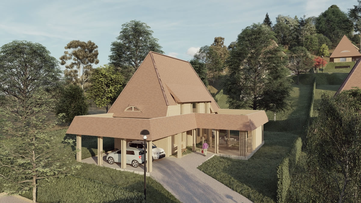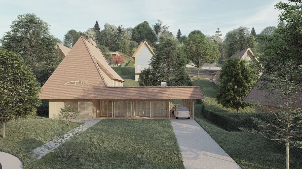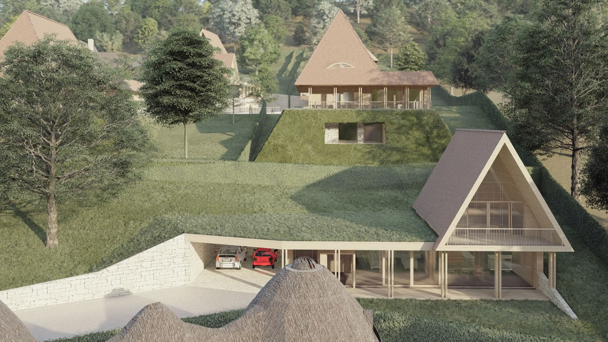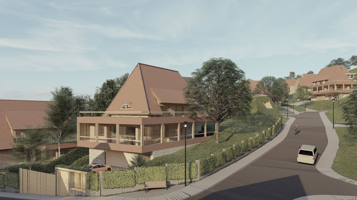 Casele și clădirile noii comunități păstrează liniile specifice ale arhitecturii tradiționale din dealurile Transilvaniei, într-o reinterpretare modernă ce include tehnologiile “verzi” cu independență energetică.